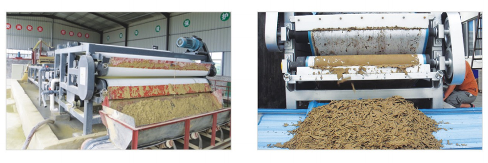 污泥脫離中壓區(qū)后就進入高壓區(qū),污泥在此區(qū)內(nèi)受到1~3組對夾輾(或帶)擠壓,經(jīng)過擠壓后體積大幅收縮,污泥內(nèi)的間隙游離水被充分擠出,此時,形成含固率較高的濾餅。重力濃縮脫水區(qū),污泥經(jīng)布料斗均勻送入濾網(wǎng),隨著濾帶向前運行,游離態(tài)的水在自重作用下通過足夠長的重力自由脫水區(qū)流入接水槽,重力脫水段也可以說是高度濃縮段,主要作用是脫去污泥中的大部分自由水及間隙水,合污泥的流動性減小,便于污泥在濾網(wǎng)上的較厚堆積,增強污泥結(jié)壓榨的承受力。